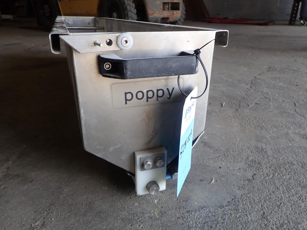 SS flour duster, 51.5 in. wide, SS hopper 8 in. long x 9 in. deep