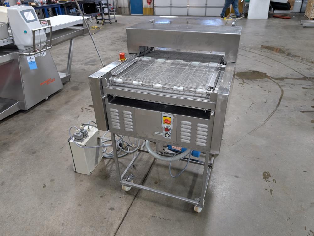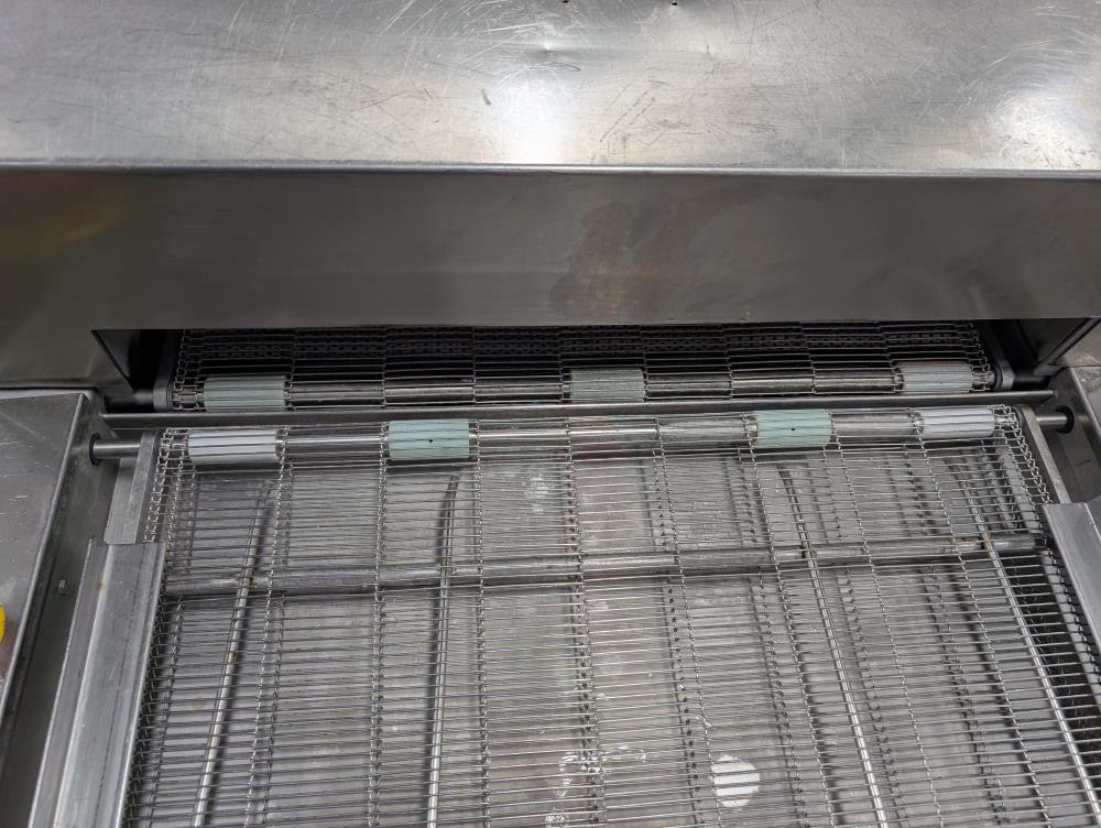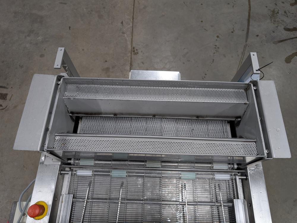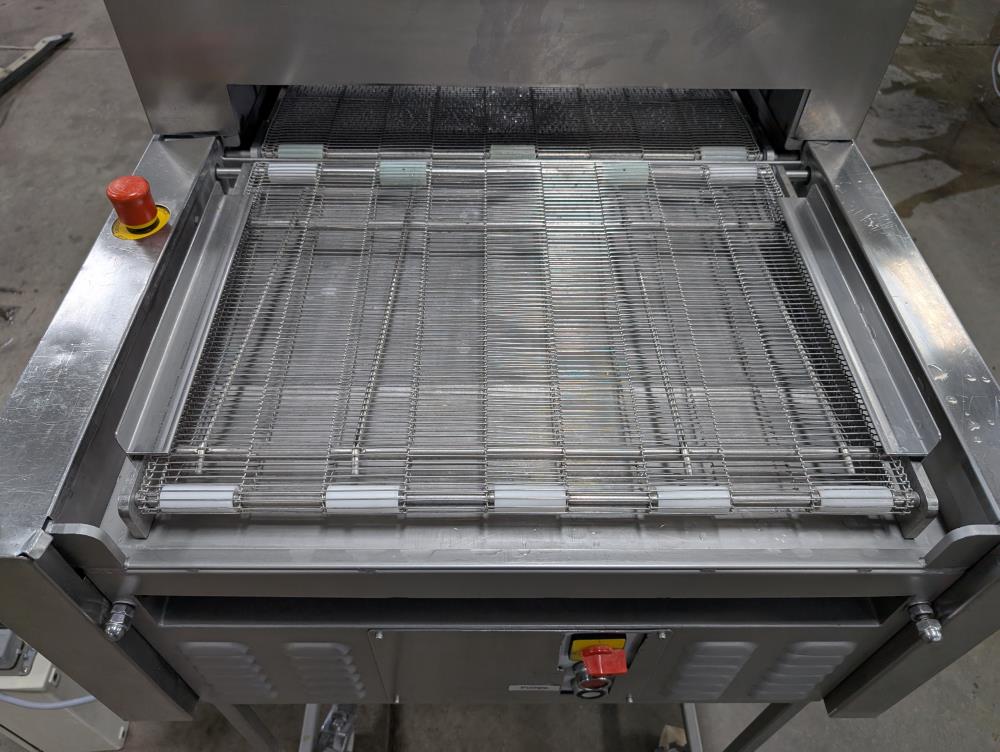 - SS wire mesh belt: Infeed conveyor - 17 in. long x 22 in. wide, discharge conveyor 12 in. long x 22 in. wide. Height - 38 in. tall