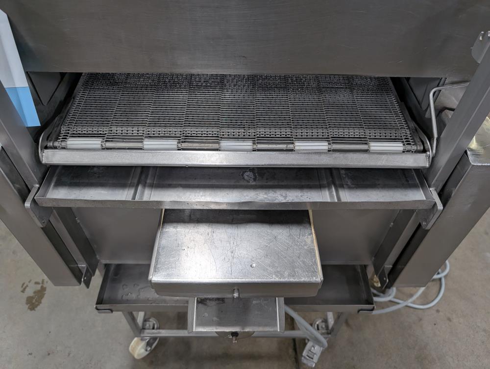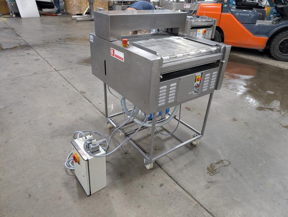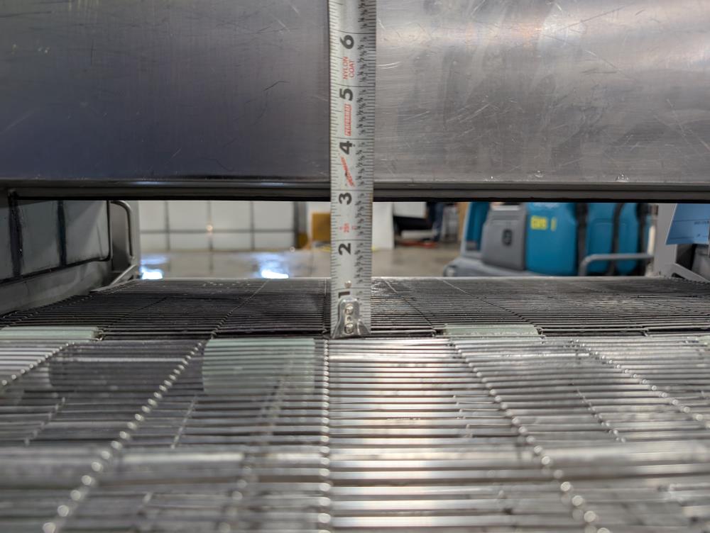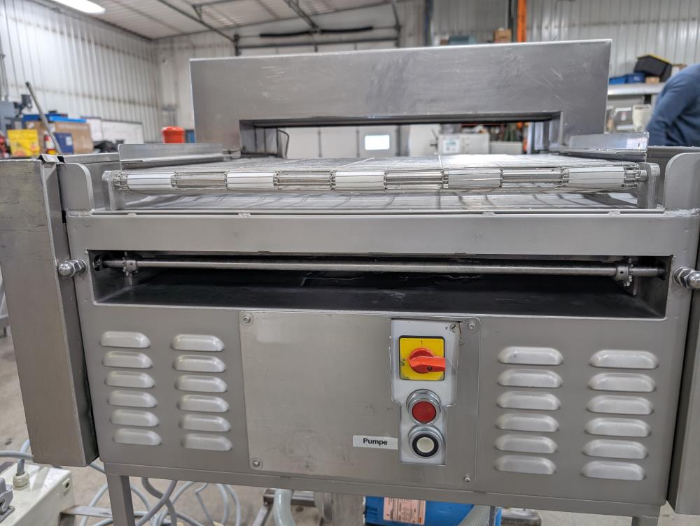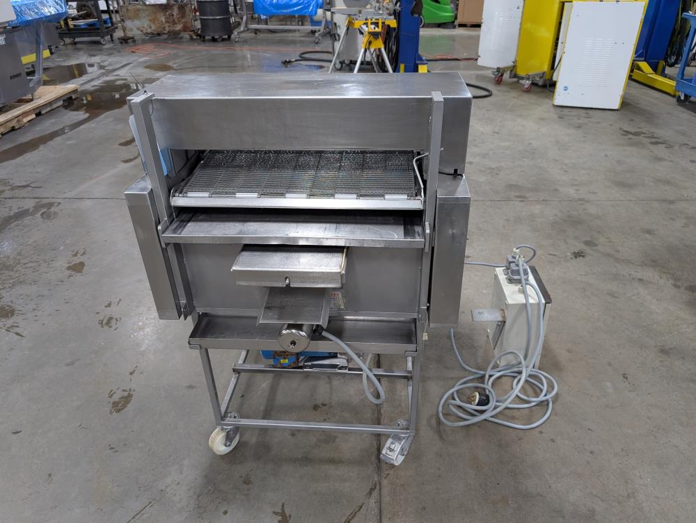 - SS wire mesh belt: Infeed conveyor - 17 in. long x 22 in. wide, discharge conveyor 12 in. long x 22 in. wide. Height - 38 in. tall