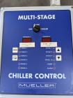 Mueller Falling Film Water Chiller, Model: 165 GAL FFC, SN: 1514109-1, Size: 165 GAL FFC, 2 SS plates, 5 ft. long x 3 ft. tall. 165 gallon capacity. Holding tank 5 ft. long x 35 in. wide x 24 in. deep. 2.5 in. inlet and outlets. Exhaust fan on top. Comes with Cancoil 2-Fan Rooftop Condenser, Model: ACU1A010M5N042PMF3, SN: 231106, R404A refrigerant. Electrical requirements 480-volt, 3 phase.