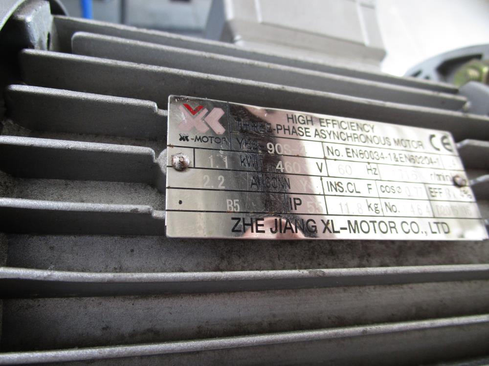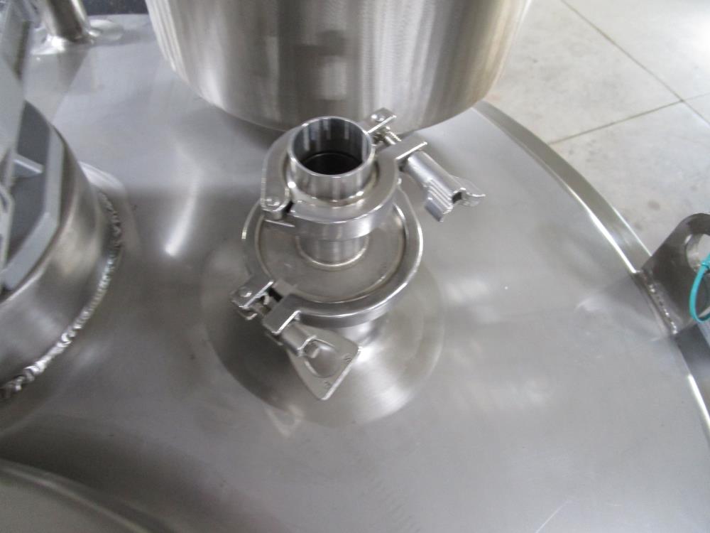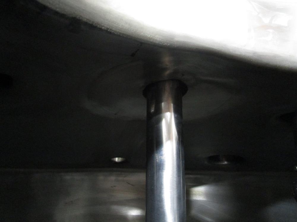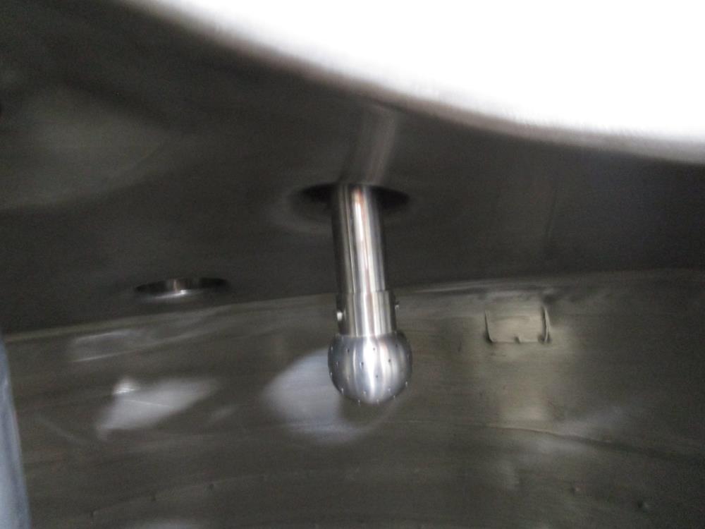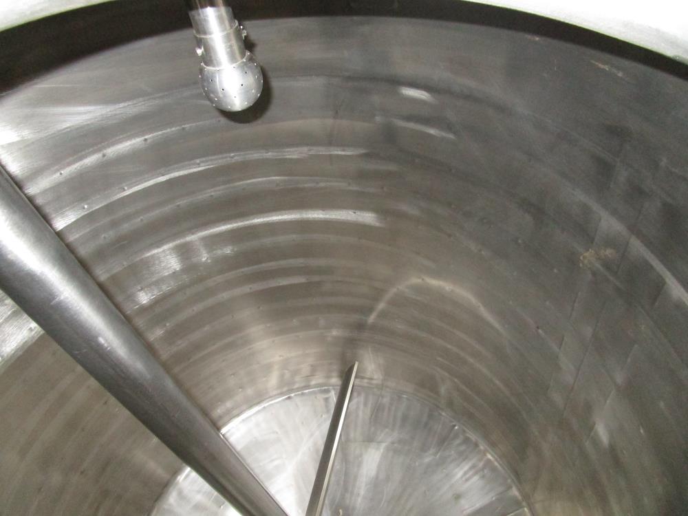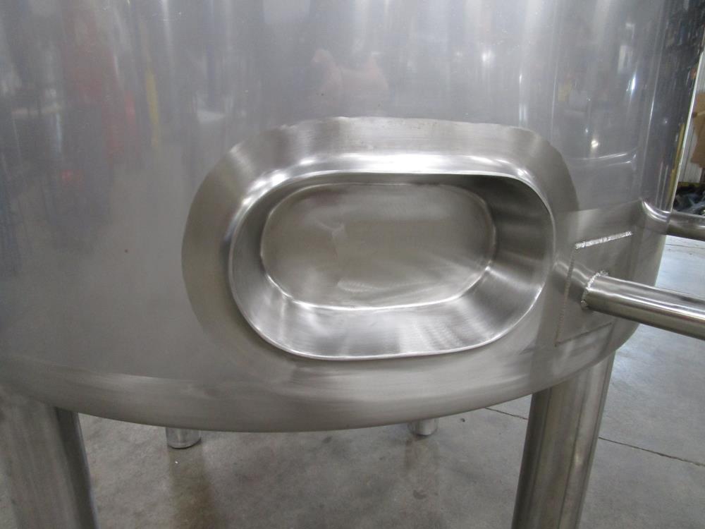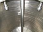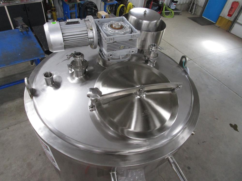 Unused SS jacketed mix tank approximately 250 gallons. Inside dimensions 40 in. diameter x 48 in. tall. Top lid 16 in. diameter. (2) Liquid ports 3 in. diameter sanitary clamp. (1) Liquid port 2 in. diameter sanitary clamp fitting. (1) Breather. Top agitation with 1.1 kw motor, 480-volt. Sloped bottom, center discharge, 3 in. diameter discharge, straight pipe, 20 in. tall clearance. (2) side and (2) bottom jacket ports, 1 in. diameter. SS legs, (2) picking eyes, ladder.