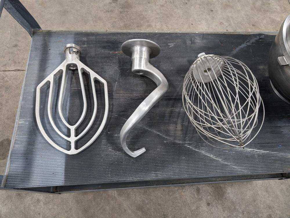 Includes (2) SS bowls, (1) SS whisk, (1) aluminum dough hook, (1) aluminum beater.