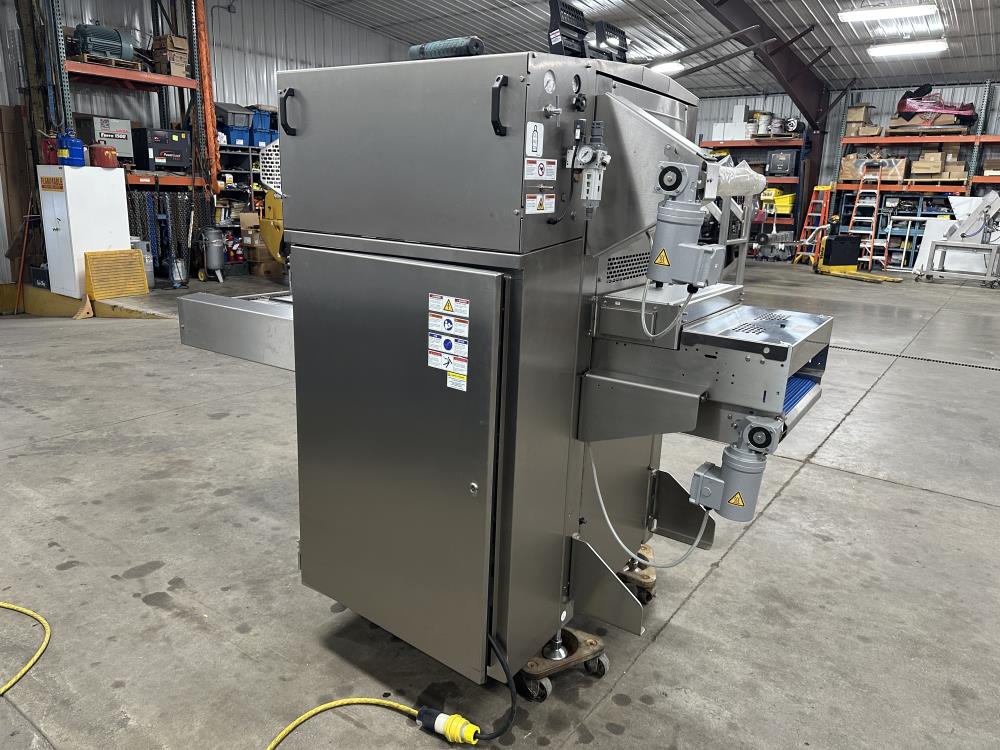 This 2022 Multivac T305 tray sealer is a compact stainless steel packaging system, equipped with advanced Multivac and Siemens controls, lug infeed, and discharge conveyor. The machine was never installed or put into production, but is being sold as-is for parts only due to shipping damage and a salvaged serial number status from the manufacturer.