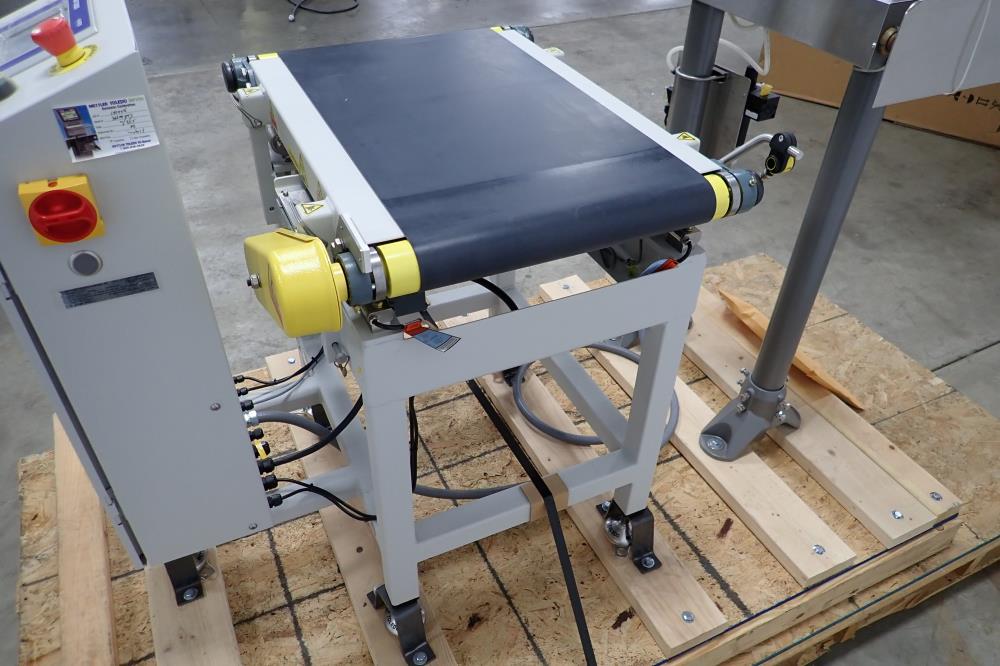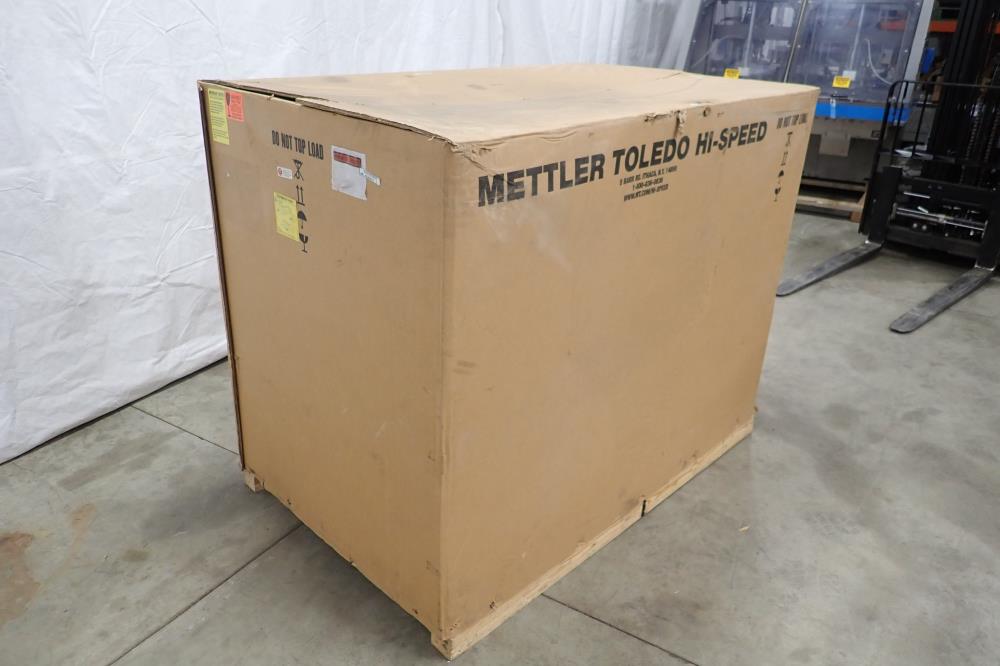 Unused Mettler Toledo Hi-Speed case checkweigher. Orientation right to left. Conveyor belt 30 in. long x 16.75 in. wide x 34 in. tall. Push reject arm 12 in. x 6 in., with photo eye. Mettler Toledo color touch screen HMI. Mild steel frame, powder coated.