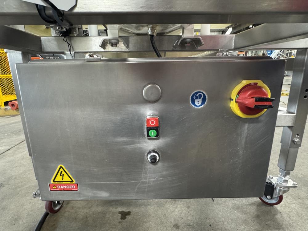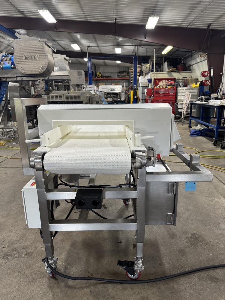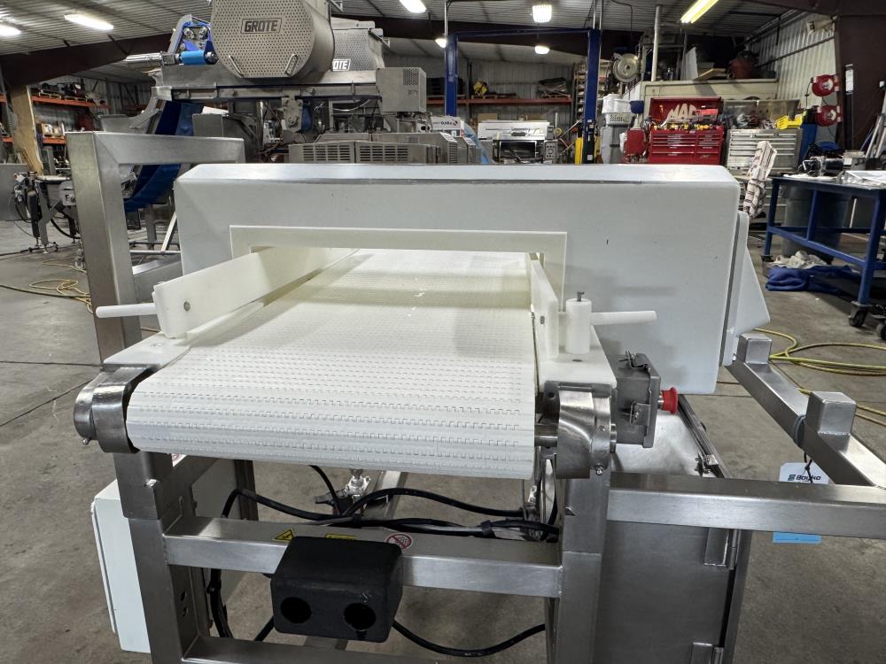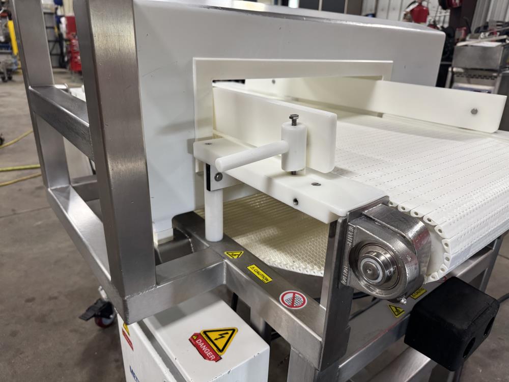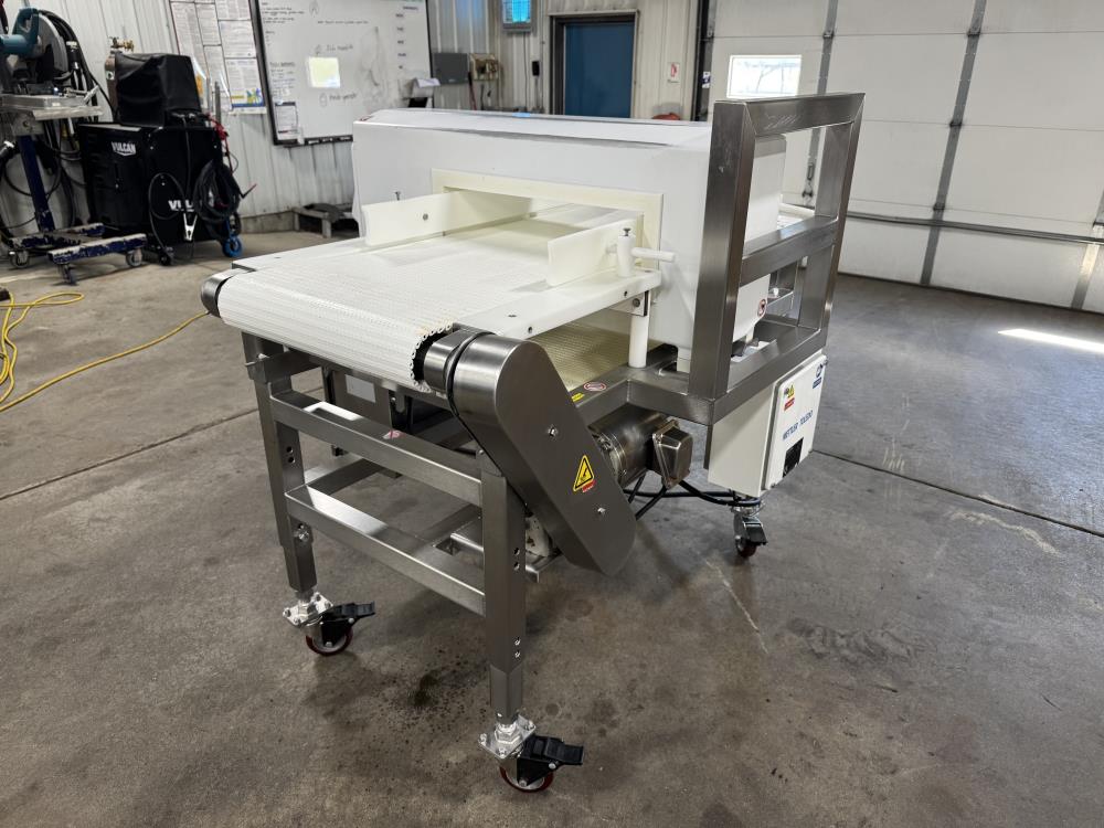 This 2016 Mettler Toledo Safeline metal detector system is built for precise inline metal detection in food and industrial processing applications. Outfitted with the Signature Touch 300 head, stainless steel washdown conveyor, and Schneider Electric variable speed controls, this unit offers reliable detection and hygienic operation.