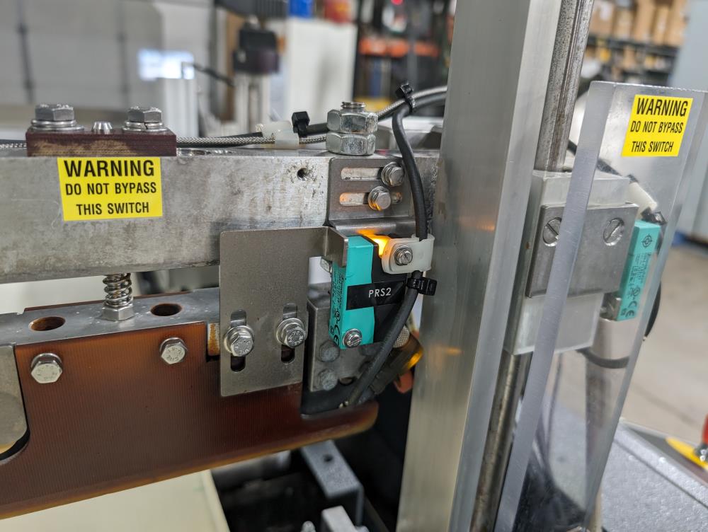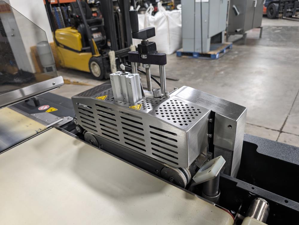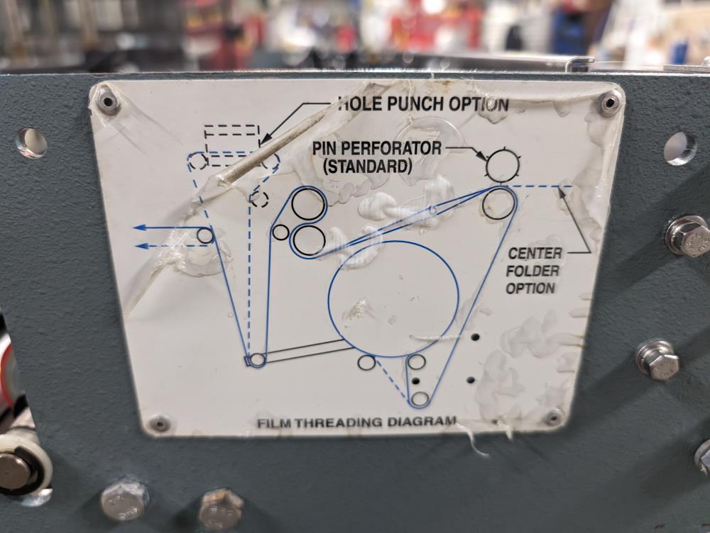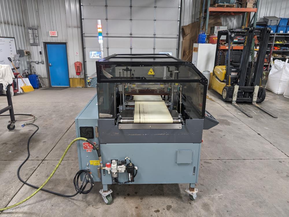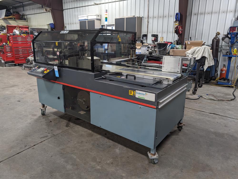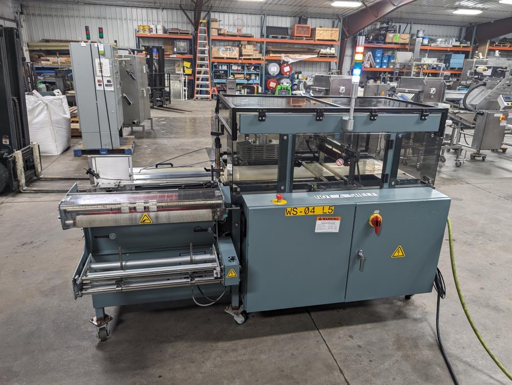 2016 Shanklin Triumph 2 automatic form-fill-seal wrapper. Model TR2. Longitude seal 21 in. wide. Continous side seal with scrap winder with break detection. Infeed conveyor 33 in. long x 14 in. wide x 37 in. tall. Side seal conveyor 27 in. long x 15.5 in. wide. Discharge conveyor 29 in. long x 14.5 in. wide x 37 in. tall. Color touch screen. Allen Bradley micrologix 1400 plc controller. ABB ac speed controllers. Electrical requirements 460-volt, 1 phase. Air requirements 3 cfm @ 70 psi. Adjustable height legs, on casters.
